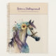 Pretty Boho horse with flowers and greenery in its purple mane. Easily personalise with her name in a trendy purple script and title of the planner. This is one in a collection of colourful horse designs for back to school.