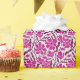 Boho wrapping paper featuring hand drawn illustration of purple mid century modern style floral pattern.