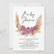 Bohemian inspired baby shower invitation featuring an earthy coloured floral wreath with pampas grass and purple orchards. This bohemian floral baby shower invitation also features a modern calligraphy image as a heading. This design is ideal as a gender neutral baby shower.