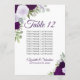 These elegant wedding table cards feature a rustic boho chic design with hand painted watercolor roses in shades of purple, plum, and lavender. The card includes a list of names so your guests will have an easy time finding the right table.