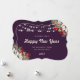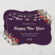 Elegant purple New Year card featuring a watercolor painting of poinsettia, holly and red berries along with string lights. Easily personalize online.