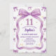 Purple Bow Birthday Invite, Girls 11th Birthday Invitation