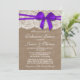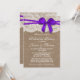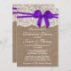 Purple Bow Burlap & Lace Wedding Rehearsal Dinner Invitation