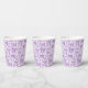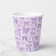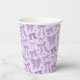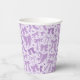Cute bow theme birthday party or birthday party paper cup featuring illustration of purple ribbons and hearts.