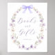 Books and Gifts sign featuring watercolor wildflower wreath and purple bow. Personalise with your own text. Matching collection in the Adore Paper Co. Zazzle shop.
