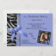 This contemporary design features a printed purple ribbon and silver pearls with black and silver zebra stripes. Upload your own photo to the funky zebra frame to further personalise the look. There is plenty of customisable text on this trendy invitation to add your party information. We also have this design in various colours. Coordinating colours on the back of this plush invitation complete the look and makes this premium design perfect for almost any occasion.