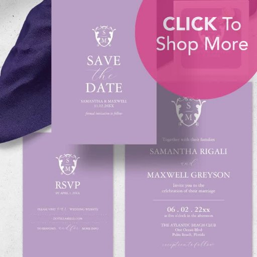 These purple bridal shower invitations feature a monogram crest. Use the template fields to add your personalised information. To see the matching wedding stationery suite visit www.zazzle.com/dotellabelle