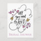 Love is in the air! This charming bridal shower invitation postcard features a cute love quote "All you need is love" nestled in purple hearts and arrows highlighted against a crisp white background