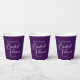 This royal purple bridal shower party paper cup features beautiful white typography on a solid deep violet for an evening party in the winter. Minimalist script and a bold colour makes your bridal event decor pop and stand out from the crowd.
