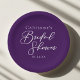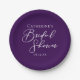 This royal purple bridal shower paper plate features beautiful white typography on a solid deep violet for an evening party in the winter. Minimalist script and a bold colour makes your bridal decor design pop and stand out from the crowd.