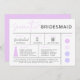 Purple Bridesmaid Info Card, Bridal Party Guide Invitation