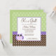 Purple Brown Green Owl Polka Dot Girl Baby Shower Invitation