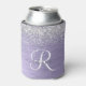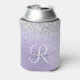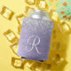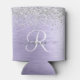 Purple Brushed Metal Silver Glitter Monogram Name Can Cooler