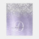 Purple Brushed Metal Silver Glitter Monogram Name Fleece Blanket
