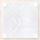 Easily personalise this trendy chic glass coaster design featuring pretty silver sparkling glitter on a purple brushed metallic background.