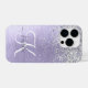 Easily personalise this trendy chic phone case design featuring pretty silver sparkling glitter on a purple brushed metallic background.