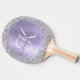 Easily personalise this trendy chic ping pong paddle design featuring pretty silver sparkling glitter on a purple brushed metallic background.