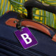 Easily change the monogram initial on the front and name and address on the back of the Purple luggage tag.