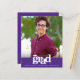 Be proud, rejoice and showcase this milestone of your favourite grad! Send out this stunning, simple, modern, personalised budget photo announcement invitation for an event to remember. Bold, graphic, white typography, cap icon, and a purple band overlay a photo of your choice. Personalise the custom text with your grad’s name, school and class year. On the back, add your personal note, next school they’re attending, party information, etc. Guaranteed to add stylish fun to their special occasion!