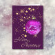 This is an elegant greeting card for the Holiday Season, with the front image of a beautiful violet and silver swirl decorated Christmas bulb set against a gold star filled purple night sky. Stylised gold text at the bottom says Merry Christmas. Easily customise the inside message to your liking, or leave as is. Bright and colourful!