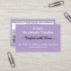 Handmade candles, or any business white typography against pretty pastel purple background. Crafted with Love typography in Black and via Personalise on right-hand side Text and Drop Shadows grey colours. Insert telephone number and website, or other information on front. Backside has white background with Purple border. Upload Logo. QR Code on left-hand side, and Pinterest (or other) social media link site on right-hand side. Click Personalze to change font colours, style, or sizes, move around text and images, or add or delete image placeholders not needed. Original Image and Design by TamiraZDesigns.