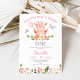 Our little piggy themed 1st birthday invitation featuring a cute pig, some wildflowers, purple butterflies and a pink balloon. This pig themed birthday invitation could be used for any age.