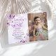 Purple Butterfly Boho Flowers 1st Birthday Photo Invitation