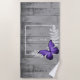 Enjoy your day at the beach or poolside with a Purple Butterfly Rustic Personalised Beach Towel. Towel design features a vibrant butterfly resting on delicate foliage with a space to add your name against a rustic wooden background. Additional gift items available with this design as well as a variety of colours.