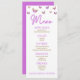 This is a purple butterfly themed bridal shower menu. The design consists of a purple butterfly glitter theme.