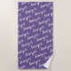 Purple Calligraphy Personalised Repeat Name Beach Towel
