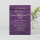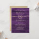 Simple, elegant, modern calligraphy script purple wood wedding reception-only invitation with faux gold rope heart.
