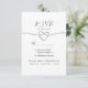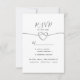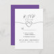 Simple, elegant calligraphy script, minimalist purple wedding RSVP card with choice of meals, faux silver rope heart.