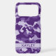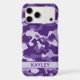 Customize this purple camouflage iPhone 17 pro max case with your name in a trendy modern CAP font in dark purple on light purple. It's so modern, girly and trendy! Perfect for any country girl!
