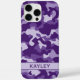 Customize this purple camouflage iPhone 16 pro max case with your name in a trendy modern CAP font in dark purple on light purple. It's so modern, girly and trendy! Perfect for any country girl!