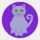 This elegant purple kitty cat illustration features a kitschy periwinkle feline with bright green eyes and a cute swirly tail! This cat artwork is the perfect gift to buy for a cat lover and anyone who loves beautiful original art!