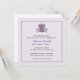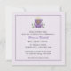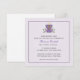 A beautiful invitation for girls' First Holy Communion with purple chalice with cross and purple flowers on light lavender background with thin frame.