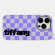 Chic purple chequered phone case, a perfect gift for your girlfriend. Add a touch of style to her everyday look with this fashionable and trendy accessory