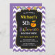 Purple Chevron Kid's Halloween Birthday Party Invitation