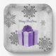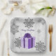 Brighten your holiday gatherings with this Purple Christmas Gift Paper Plates, a must-have for your Christmas party supply. These sturdy plates feature a charming Christmas gift design, complete with a gift bow and grey snowflakes, accented by falling snow for a festive touch. The elegant script displaying "Merry Christmas" enhances the holiday present theme, adding warmth to your celebrations. Perfect for serving treats, these plates combine style and functionality to elevate your seasonal events with a sophisticated, wintry charm.