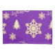A colourful Christmas decor design, featuring snowflakes, Christmas trees and swirls scattered over a festive purple background.