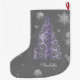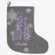 Add a festive touch to your fireplace mantle this holiday season with a Purple Christmas Tree and Snowflakes Stocking. Stocking design features a vibrant artistic Christmas tree with falling snowflakes and a dark grey background with a space you can add your name for personalisation. Additional gift and holiday items available with this design as well.