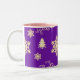 A colourful Christmas decor design, featuring snowflakes, Christmas trees and swirls scattered over a festive purple background.