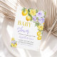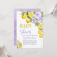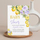 Celebrate your upcoming arrival with this elegant Citrus Floral Purple Lemon Baby Shower Invitation. Featuring a stunning blend of vibrant purple lemons and lush botanical greenery, this design offers a unique and modern twist on a classic fruity theme. Perfect for a "Main Squeeze" or "A Little Cutie is on the Way" celebration, this high-quality card is easily customisable to include all your event details. Impress your guests with this chic, garden-inspired stationery that perfectly balances whimsical charm with sophisticated floral aesthetics.