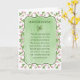 This St Patrick's Day card features the Irish Blessing surrounded by a border of purple clover. On the right side is the Irish Blessing “May the road rise up to meet you. May the wind always be at your back. May the sun shine warm upon your face, and rains fall soft upon your fields. And until we meet again, May God hold you in the palm of His hand.” On the inside of the card is an all over pattern of clover that coordinates with the front.