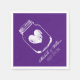 Royal purple and white rustic country chic mason jar wedding napkins. Elegant vintage script typography design for summer marriage / garden style wedding party, bridal shower, engagement, i do bbq, anniversary etc. Customisable background colours for bride and groom theme. Cute glass masonjar with faded love symbol. Romantic DIY theme for getting married in july, august, september etc.