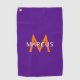 Create your own modern personalised monogram on a printed golf towel in purple and orange with plain and simple font typography that will look in style for years. Click 'customise further' to change fonts or colours to match your golf team school colours.