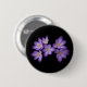 This lovely button is decorated with a bouquet of six delicate pale purple crocus blossoms with golden centres on a pure black background. When the crocuses bloom, we know spring is here!