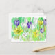 A postcard featuring a patch of colourful crocus flowers the first to bloom in spring and brave the cold temperatures drawn with coloured pencil and graphite. Great for postcard exchanges!