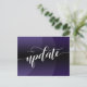The background has been covered in a trio of purple curves with a subtle black ombre overlay. Using a pretty script font with swirls and waves, I created a graphic that reads "update". The reverse side includes template placeholders for your details with matching accents featuring the calligraphy font. Use these template fields to add your personal details and change my draught wording to suit your needs and situation. Other pieces are available in the set and I'm happy to create additional variations upon request. // 99 //