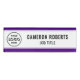 Personalise this purple edged name tag with your company logo, employee name and job title. It's available with a magnetic back fastener or with a safety pin back. It's a lightweight name tag - 1 inch x 3 inch. Be sure to select a backing option where it says "Backing Option" on the product page. Employee name and job title are easy to read in black on white. This name tag is perfect for all your employees.